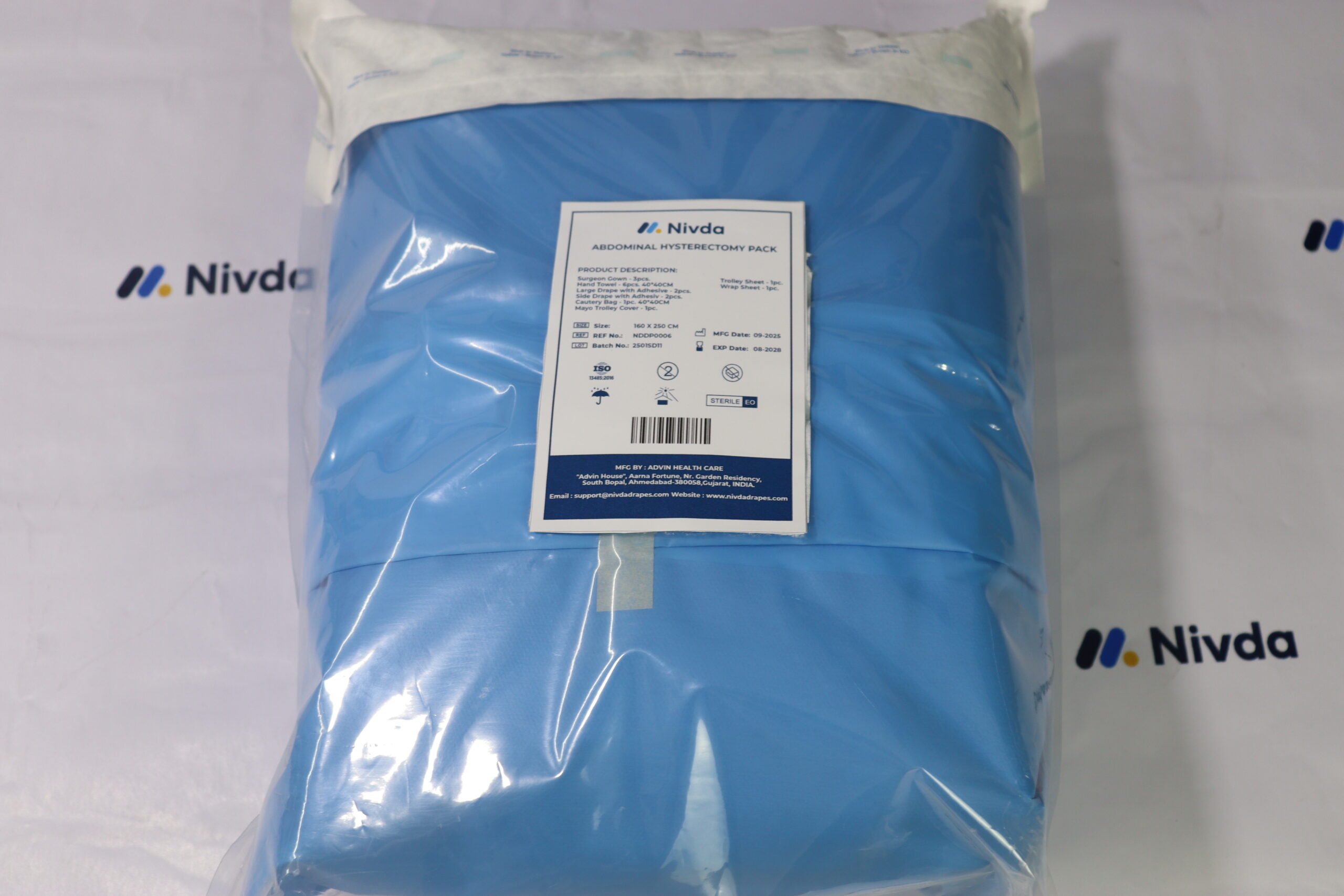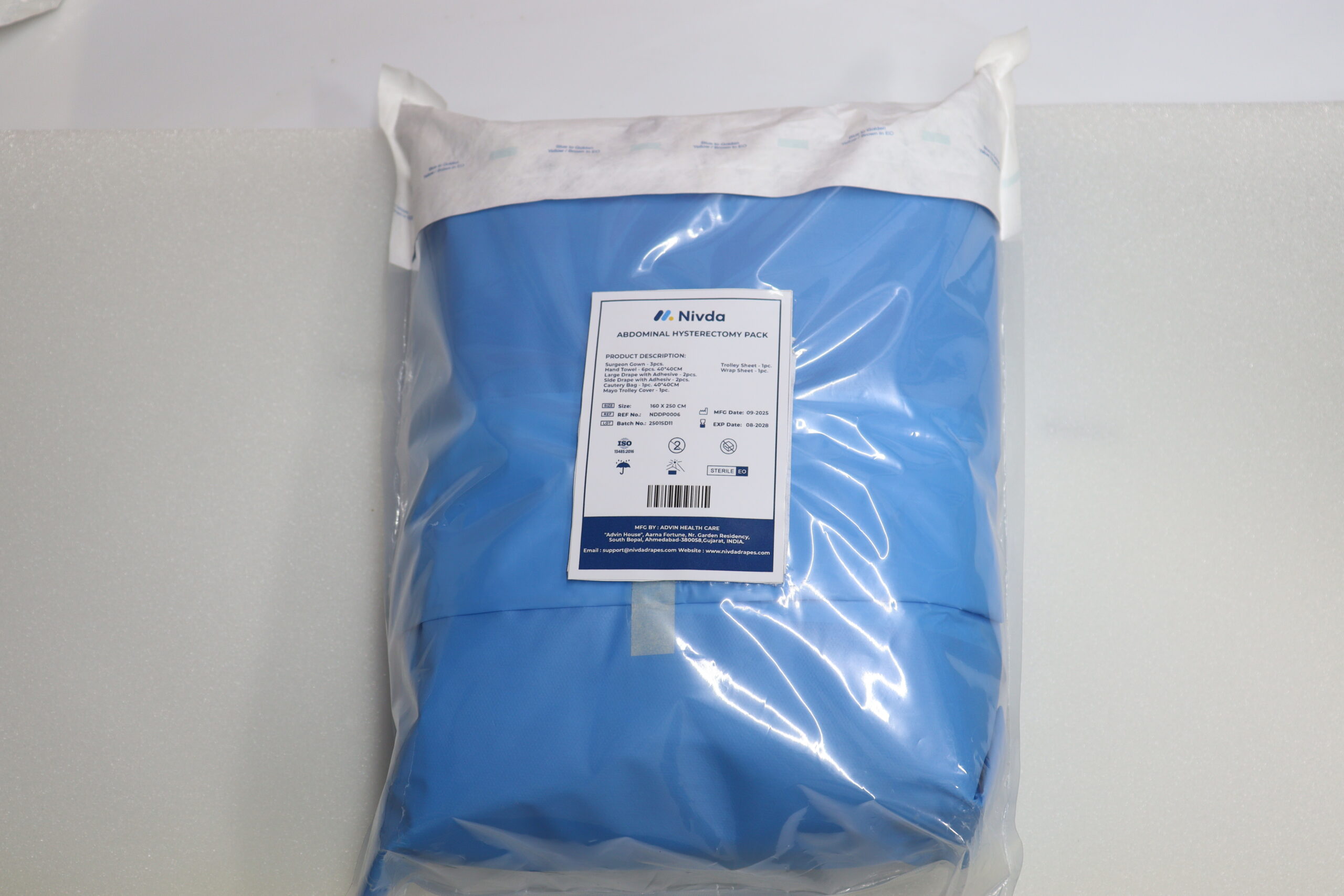 Le kit de drapage pour hystérectomie OT est une solution stérile à usage unique conçue pour les hystérectomies au bloc opératoire. Il assure une couverture complète de la patiente, maintient un champ opératoire stérile et contribue à la prévention des infections. Fabriqué par Nivda, ce kit garantit un environnement chirurgical sûr et efficace.