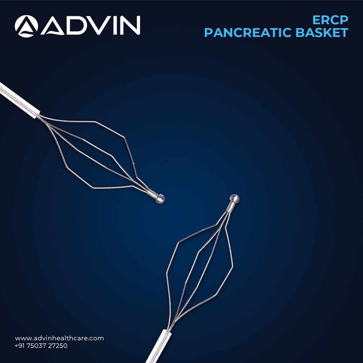 The ERCP Pancreatic Basket from Advin Health Care is a precision-engineered device used for stone extraction and foreign body retrieval from the pancreatic duct during endoscopic retrograde cholangiopancreatography (ERCP). It is specially designed to provide controlled stone capture and smooth retrieval with minimal ductal trauma.