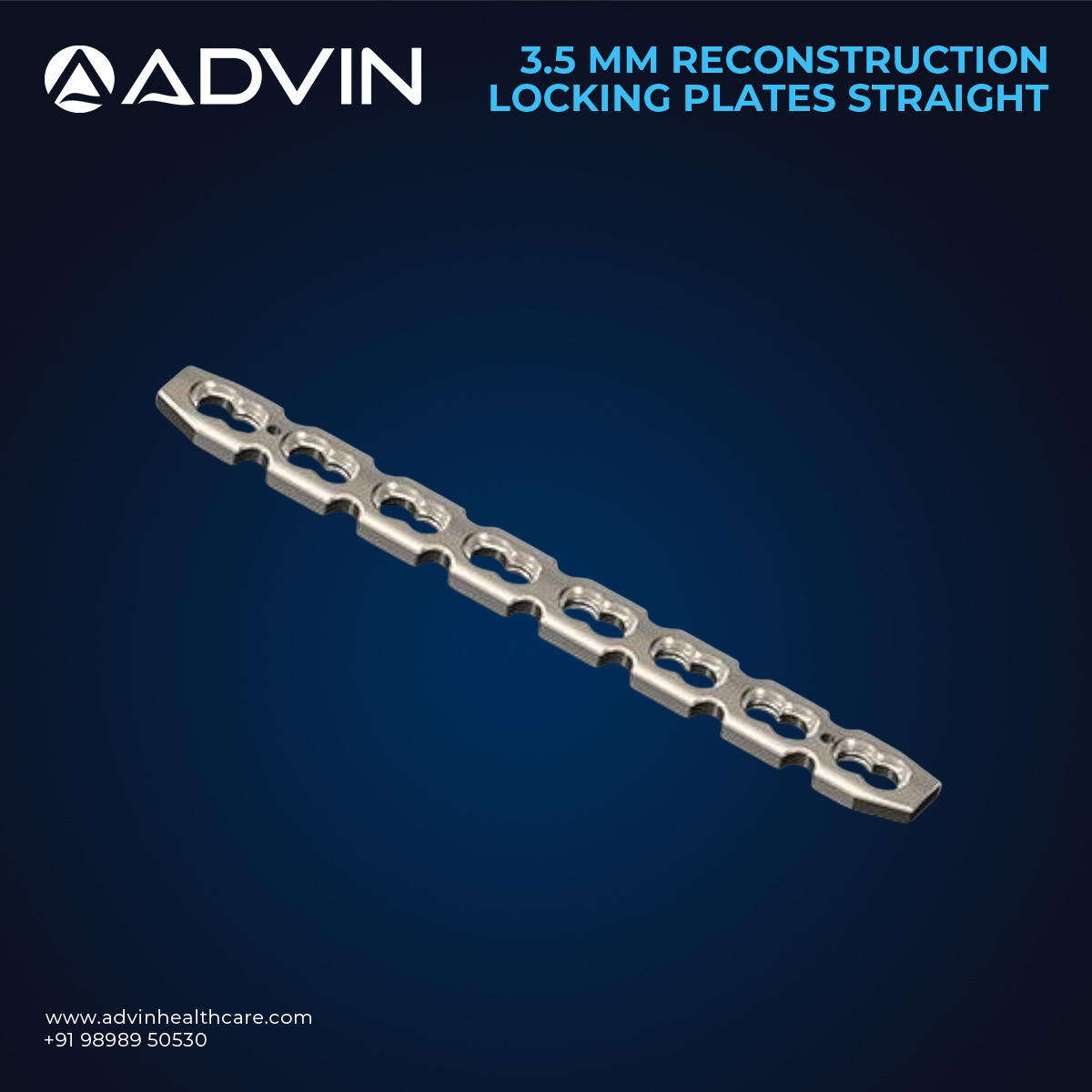The 3.5mm Reconstruction Locking Plates Straight are specially designed for reconstructive trauma surgeries requiring stable and reliable fixation. Their straight design allows for accurate contouring along bone surfaces, ensuring proper alignment during the healing process. Made from high-quality, durable materials, these plates offer dependable performance in surgical applications. Advin Health Care manufactures these implants with precision, enabling surgeons to achieve effective fracture stabilization and improved patient outcomes.