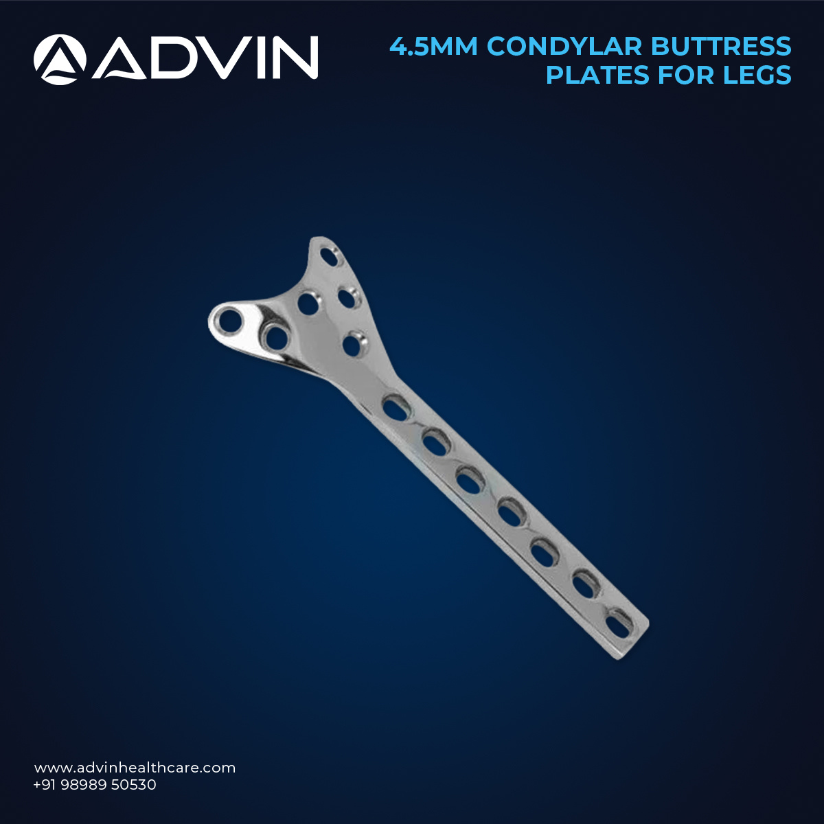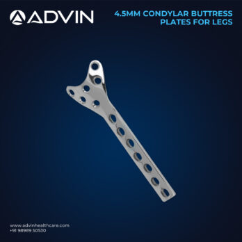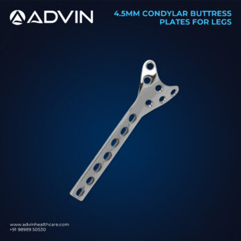 Advin Health Care offers precision-engineered 4.5mm Condylar Buttress Trauma Implant Tubular Plates designed for orthopedic trauma surgeries. The implant provides excellent stability in peri-articular fractures, allowing surgeons to achieve reliable fixation. Its tubular buttress design minimizes the risk of collapse and maintains anatomical structure during healing. Manufactured from high-quality biocompatible material, it ensures long-lasting performance and supports optimal patient recovery.