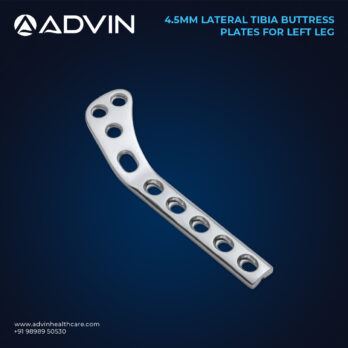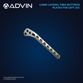 The 4.5mm Surgical Lateral Tibia Buttress Plate for the left leg is specifically designed for reliable fracture management in orthopedic trauma surgeries. Advin Health Care manufactures this implant with high-grade biocompatible material to provide strength, durability, and safe implantation. The anatomical contour of the plate ensures accurate placement along the lateral side of the tibia, offering excellent stability. It is ideal for high-load-bearing regions, helping surgeons achieve proper alignment and improved patient recovery outcomes.