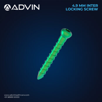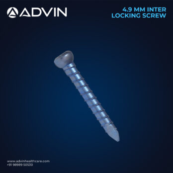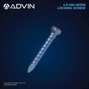 The 4.9mm Inter Locking Screw is engineered for reliable bone stabilization in combination with intramedullary nails and locking plate systems. Manufactured from high-quality medical-grade stainless steel, it ensures excellent strength, durability, and resistance to corrosion. Advin Health Care produces this screw with precise threading and smooth finishing to facilitate accurate insertion and secure locking. Its design allows minimal surgical trauma, reduces operative time, and promotes efficient fracture healing while maintaining optimal mechanical stability.