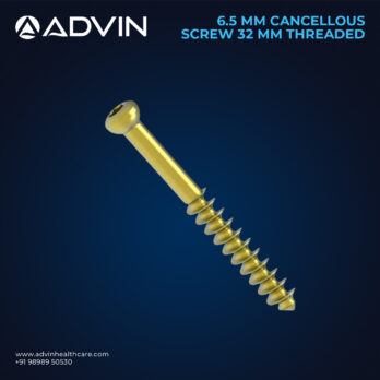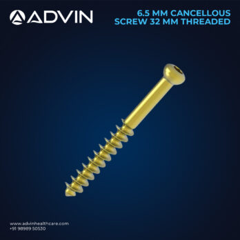 The 6.5mm Cancellous Screw with 32mm threading is widely used in trauma orthopedic procedures for large cancellous bone fixation. Its extended threaded portion allows for deeper engagement in cancellous bone, enhancing stability and minimizing the risk of loosening. Advin Health Care manufactures these screws under strict quality standards, ensuring biocompatibility, mechanical strength, and long-term surgical reliability. The design promotes accurate fracture alignment, secure fixation, and improved patient recovery outcomes.