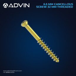 6.5mm cancellous screw 32mm threaded, large bone cancellous screw, orthopedic fixation screw, trauma fixation screw, Advin orthopedic screw, surgical bone screw, cancellous fracture screw, orthopedic trauma screw