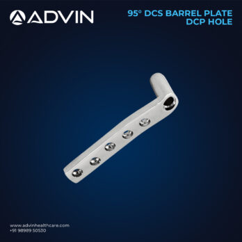 The 95° DCS (Dynamic Condylar Screw) Barrel Plate with DCP hole is widely used in orthopedic trauma for the fixation of distal femoral fractures and other challenging fracture patterns. Its 95-degree design allows accurate anatomical alignment, while the DCP hole ensures better screw placement and compression across the fracture site. This combination offers strong mechanical stability and promotes early mobilization for patients. Advin Health Care manufactures this implant using high-quality stainless steel and titanium, ensuring strength, durability, and biocompatibility for safe and long-lasting performance in orthopedic surgeries.
