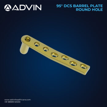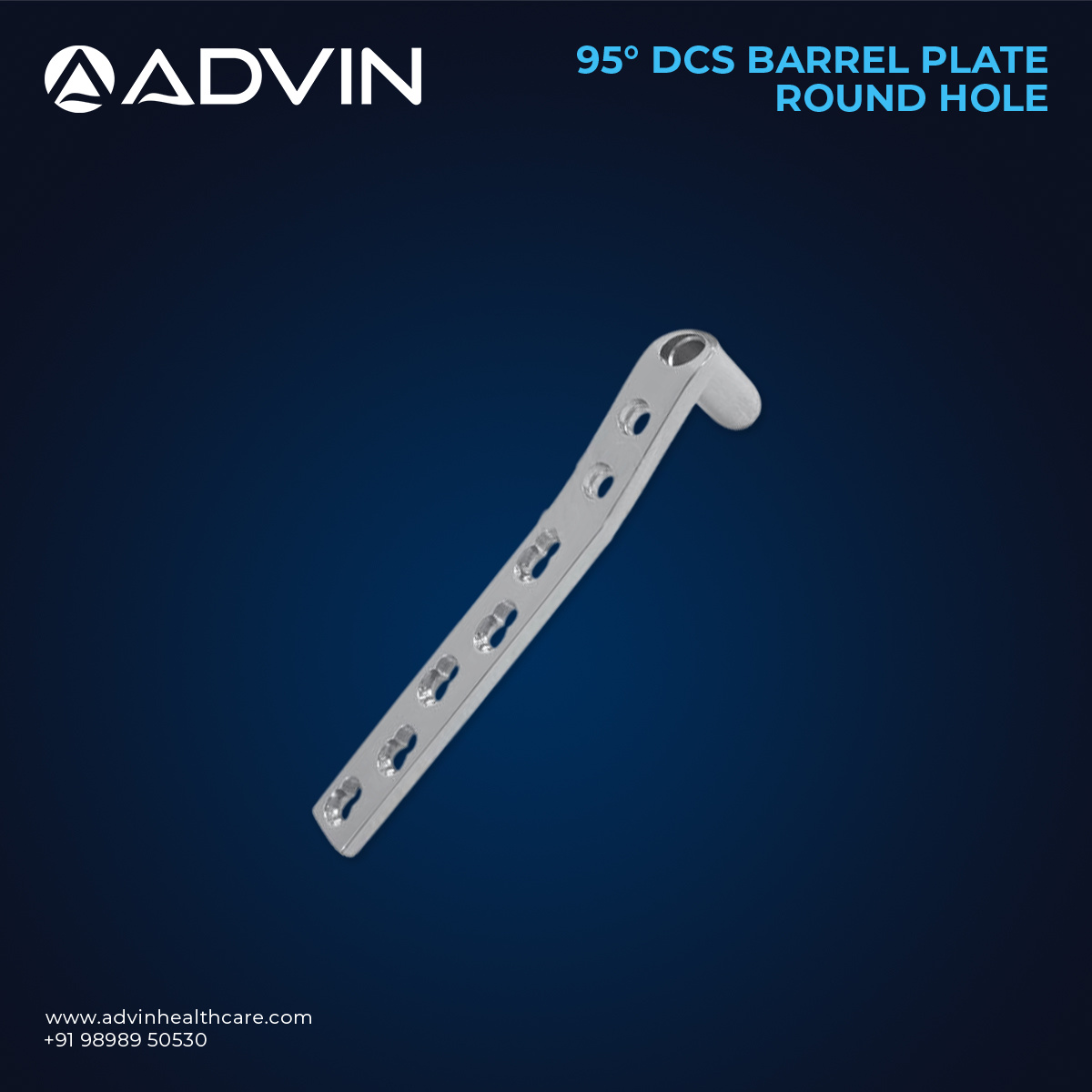 The 95° DCS (Dynamic Condylar Screw) Barrel Plate with round hole is a specialized trauma implant designed for fixation of distal femoral and supracondylar fractures. Its 95-degree angle construction allows proper anatomical alignment and secure fixation in challenging fracture patterns. This implant ensures mechanical stability, enabling early mobilization and faster healing outcomes. Advin Health Care manufactures the DCS Barrel Plate in high-quality stainless steel and titanium, providing strength, durability, and biocompatibility for safe orthopedic surgical use.