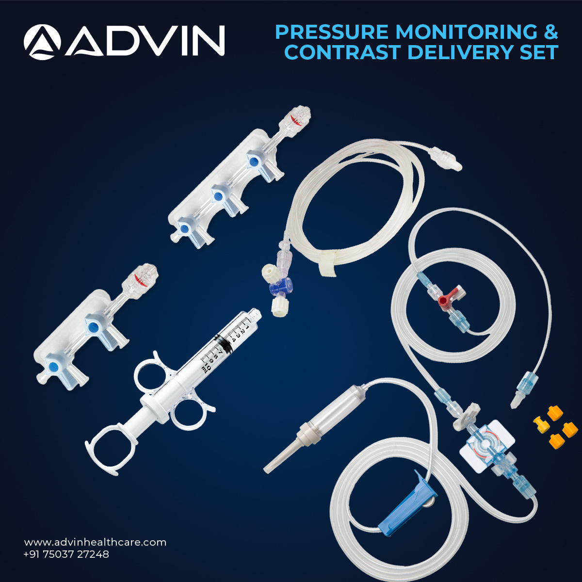 This set is designed to support precise pressure monitoring during diagnostic and interventional angiography procedures. It typically includes components such as pressure lines, manifolds, and connectors for reliable measurement and fluid management. The system helps clinicians assess vascular conditions and ensure proper contrast flow during imaging. Advin Health Care provides angiography pressure monitoring sets developed to meet clinical standards for safety, reliability, and consistent performance in cardiac and vascular diagnostics.
