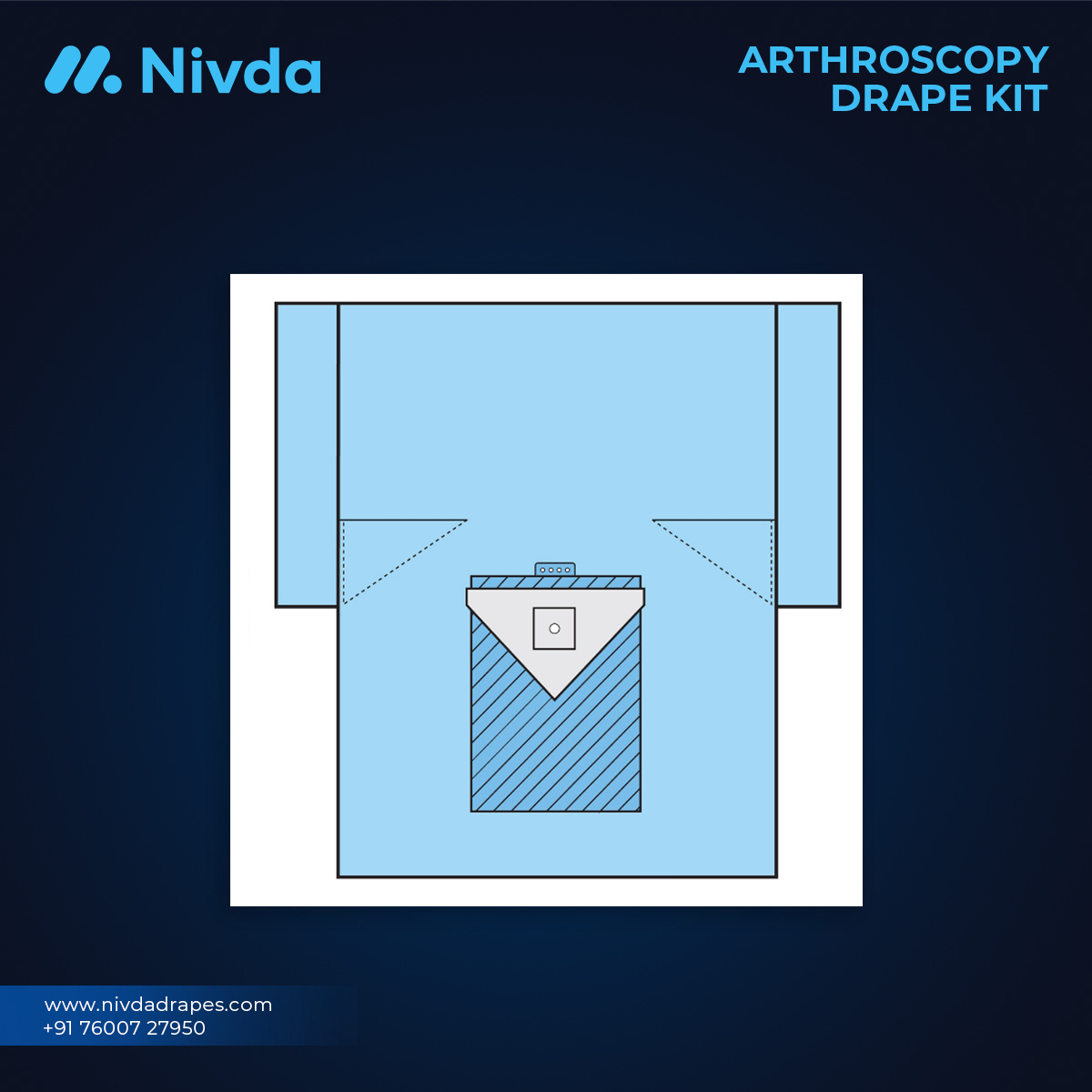 Arthroscopy Drape Kit is a sterile, single-use draping solution designed for arthroscopic procedures such as knee, shoulder, and hip arthroscopy. It includes fenestrated drapes with fluid collection features to keep the surgical field clean and dry. Manufactured by Nivda, this kit ensures superior infection control, patient safety, and efficient OT setup.