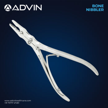 Manufactured by Advin Health Care, the bone nibbler is crafted from premium-grade stainless steel for corrosion resistance, long-term durability, and repeated sterilization. The ergonomic handle ensures comfortable grip and precise control, allowing for effective and safe surgical outcomes. This instrument is ideal for bone contouring, shaping, and fragment removal in various surgical procedures.