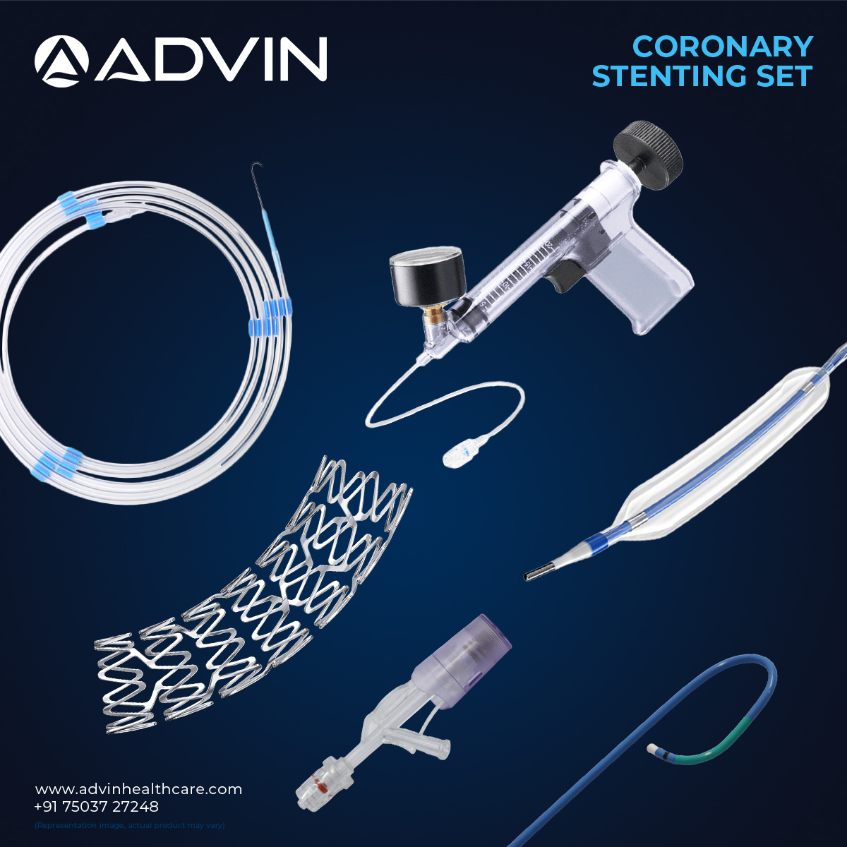 Coronary stenting set, cardiac stent kit, coronary intervention set, PCI stenting set, coronary angioplasty stent kit, heart stent procedure set, interventional cardiology stent set, coronary artery stent kit