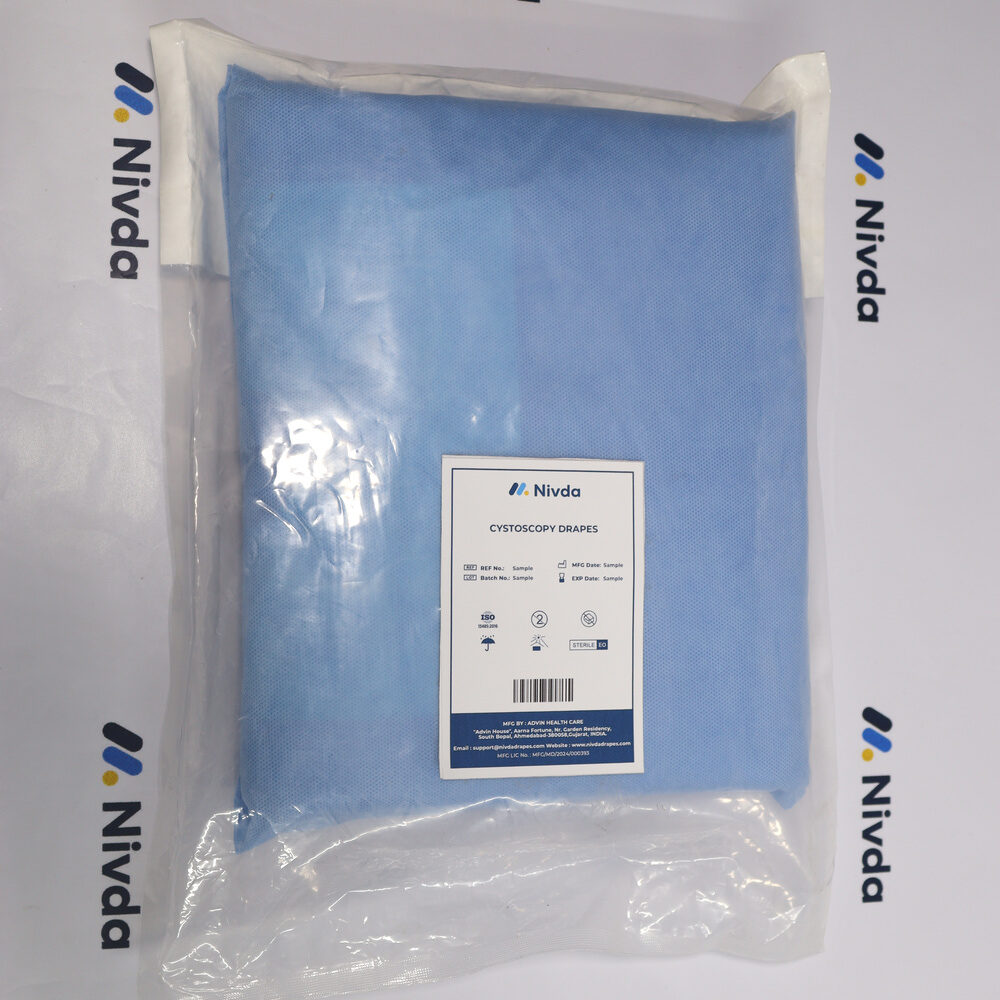 Cystoscopy Drapes are an essential part of urological procedures, offering effective barrier protection and infection control during diagnostic and operative cystoscopy. They often include a fluid collection pouch to manage irrigation fluids efficiently and keep the operating area clean and dry. Nivda manufactures these drapes using premium, fluid-repellent non-woven material that ensures strength, drapeability, and patient comfort throughout the procedure. Being sterile and disposable, they minimize the risk of cross-contamination, improve OT efficiency, and support strict hospital hygiene standards.
