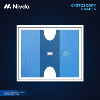 Cystoscopy Procedure Drape 200cm x 150cm offers superior coverage and fluid management for both diagnostic and therapeutic cystoscopy. The larger 200cm x 150cm design helps create a secure sterile zone, minimizing contamination risks during urological procedures. Nivda manufactures this drape with high-quality fluid-repellent non-woven material, making it strong, soft, and easy to handle. Its fenestrated design and optional fluid collection pouch keep the surgical field dry and clean. Being sterile and single-use, it helps hospitals reduce cross-contamination, maintain OT hygiene, and improve surgical workflow efficiency.