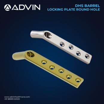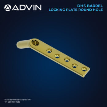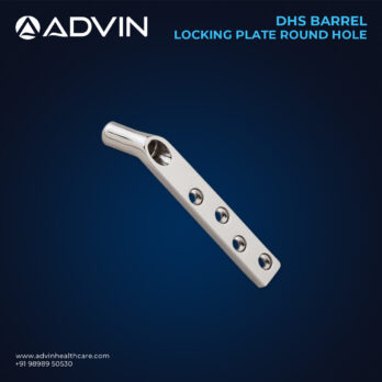 The DHS Barrel Locking Plate Round Hole is a trauma implant used in the surgical management of intertrochanteric and subtrochanteric fractures of the femur. Manufactured from high-quality stainless steel or titanium, these plates are designed to deliver strength, stability, and long-lasting durability. Advin Health Care offers these plates in angle variations of 120°, 125°, 130°, 135°, 140°, and 145°, enabling surgeons to achieve accurate anatomical fixation for different clinical needs. With a round hole for secure screw placement and a smooth surface finish, these implants help reduce complications and support efficient fracture healing in orthopedic trauma care.
