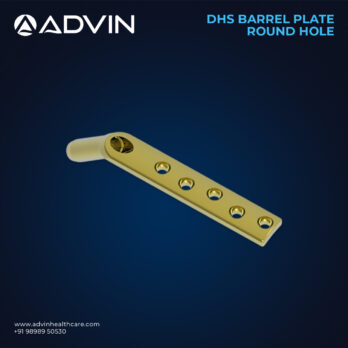 The DHS Barrel Plate Round Hole is a critical component in the surgical treatment of proximal femoral fractures. Its design facilitates load sharing and dynamic compression across the fracture site, improving healing outcomes and minimizing complications. With angle options ranging from 120° to 145°, the surgeon can choose the most anatomically appropriate fit based on the patient’s femoral neck-shaft angle. The round hole configuration allows secure locking with DHS lag screws and offers ease of instrumentation. Advin Health Care manufactures these plates with medical-grade stainless steel or titanium, ensuring precision, strength, and long-term implant performance in trauma orthopedic surgeries.