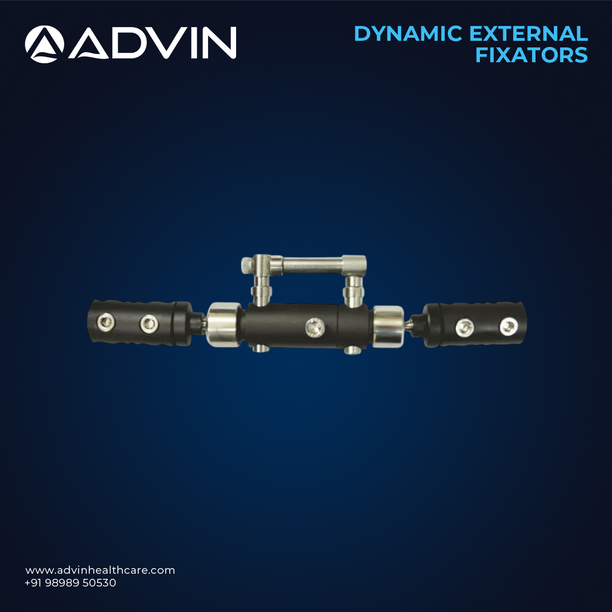 Dynamic External Fixators are designed to stabilize fractures, correct deformities, and facilitate proper bone healing while allowing controlled axial motion at the fracture site. Made from high-quality medical-grade stainless steel and lightweight aluminum alloys, they offer durability, strength, and corrosion resistance. Advin Health Care manufactures these fixators with precision-engineered components for easy assembly, adjustable tension, and secure fixation. Their design allows minimally invasive application, reduces soft tissue damage, and supports faster rehabilitation while maintaining optimal fracture alignment and mechanical stability.