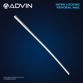 Advin Health Care manufactures premium-quality Femur Interlocking Nails used in trauma orthopedic surgeries for femoral fracture stabilization. These nails are engineered to provide superior axial and rotational stability with both proximal and distal locking options. The design ensures accurate anatomical alignment, reducing the risk of malunion or implant failure. Made from high-grade stainless steel or titanium, they offer strong fixation, biocompatibility, and enhanced post-operative recovery for patients.