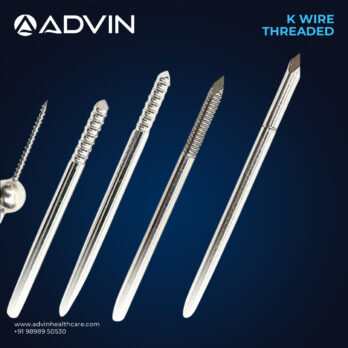 Advin Health Care manufactures high-quality Threaded K Wires designed for precise stabilization of fractures in trauma orthopedic procedures. The threaded design enhances bone grip, offering secure fixation for comminuted or osteoporotic fractures where standard K Wires may fail. These wires can be used temporarily for fracture reduction or as a definitive fixation in selected cases. Made from biocompatible stainless steel, Threaded K Wires provide reliable fracture stabilization, minimal tissue trauma, and improved post-operative outcomes.