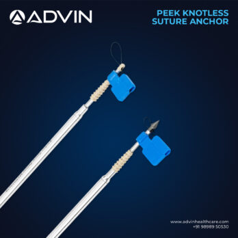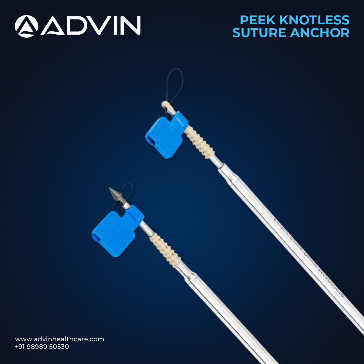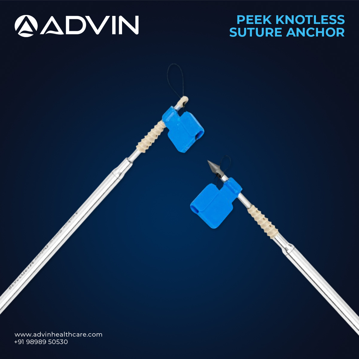 The Knotless PEEK Screw Suture Anchor with PEEK Tip is widely used in arthroscopic and reconstructive orthopedic procedures, including rotator cuff repair, shoulder stabilization, and ligament reconstruction. Its PEEK composition ensures excellent biocompatibility, durability, and radiolucency for precise post-operative evaluation. The knotless design eliminates the need for tying knots, reducing surgical time and minimizing potential soft tissue irritation. Advin Health Care manufactures these anchors with advanced technology and precision, providing surgeons with a reliable solution for secure and efficient soft tissue fixation.
