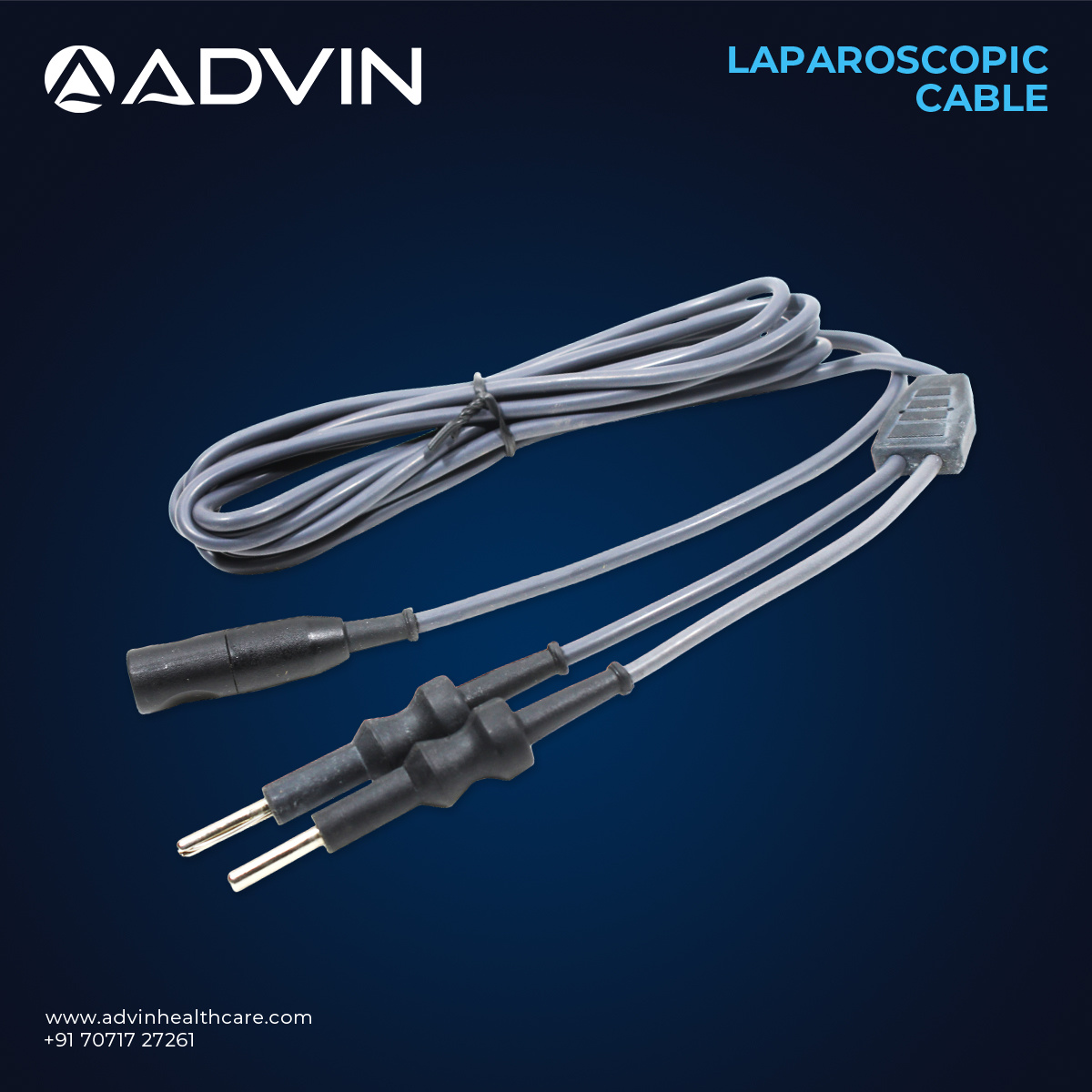 The laparoscopy bipolar forceps cord is designed to provide a secure electrical connection between bipolar laparoscopic forceps and electrosurgical units. It enables controlled bipolar energy transmission required for effective tissue coagulation during laparoscopic procedures. The cord is manufactured with high-quality insulation and durable connectors to maintain safety and performance in the operating room environment. Produced under strict quality standards, Advin Health Care supplies dependable bipolar forceps cords that deliver consistent performance and compatibility with standard laparoscopic electrosurgical systems