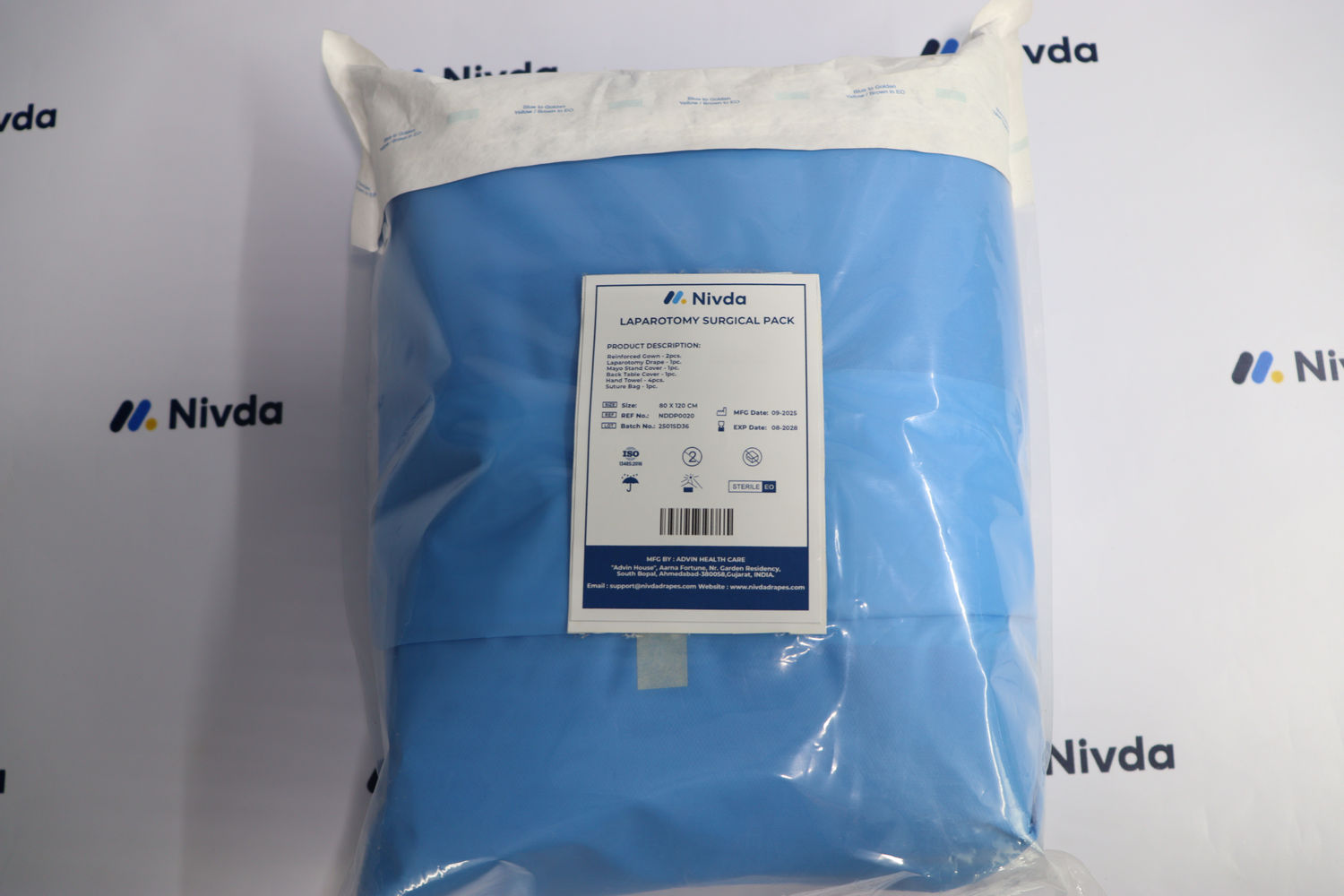 Laparotomy Drape Packs are used in major open abdominal surgeries involving organs such as the intestines, liver, stomach, and reproductive system. These packs are pre-assembled to ensure consistent sterility and to reduce preparation time before surgery. Their design supports effective fluid management and wide-area protection throughout lengthy procedures. Nivda manufactures Laparotomy Drape Packs using high-quality medical-grade materials to enhance infection control, improve operating room workflow, and ensure dependable performance during major abdominal surgeries.