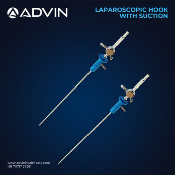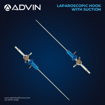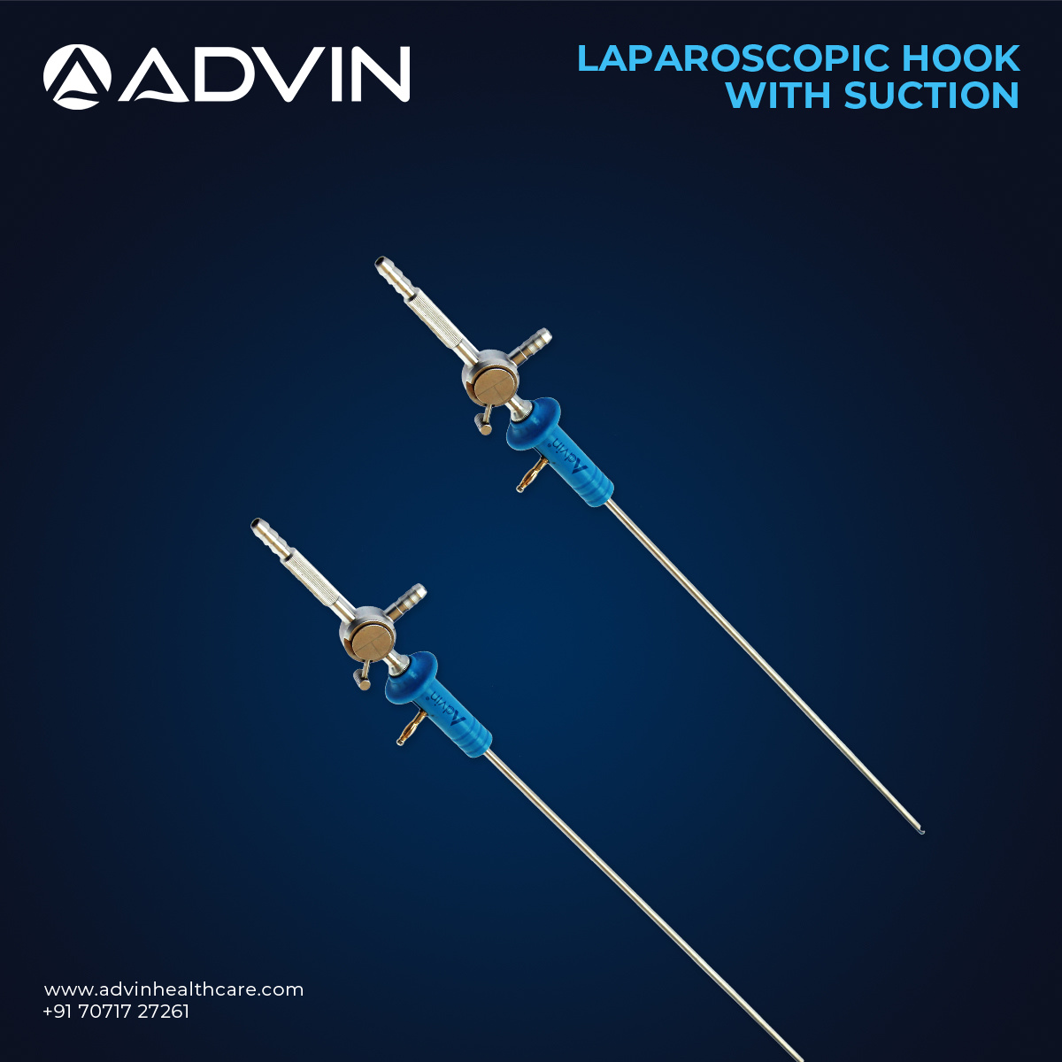 The laparoscopy hook with suction is designed to improve surgical efficiency by integrating tissue dissection and fluid management into a single instrument. The hook tip allows surgeons to carefully dissect and coagulate tissue using electrosurgical energy, while the suction channel removes blood, smoke, and fluids from the operative area. This combination supports better visibility and reduces the need to switch instruments during procedures. Manufactured under strict quality standards, Advin Health Care provides durable and reliable instruments that ensure consistent performance and compatibility with standard laparoscopic electrosurgical systems.