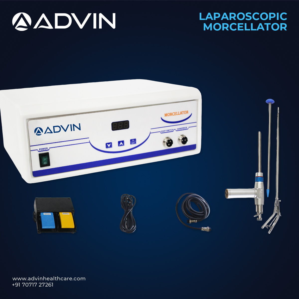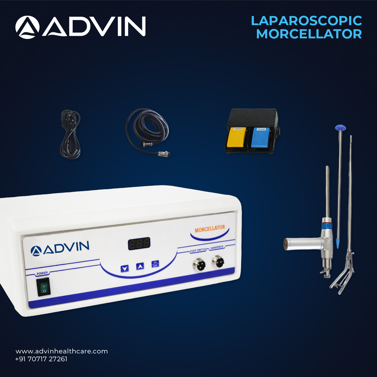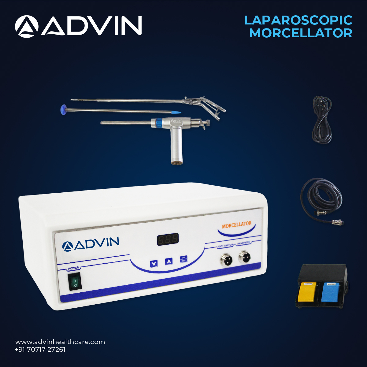 The Laparoscopy Morcellator is designed for efficient and precise tissue morcellation during minimally invasive surgeries. It allows surgeons to break down larger tissues into smaller fragments for easy removal through small incisions, enhancing patient safety and reducing operative time. The device is suitable for procedures such as myomectomy, hysterectomy, and other laparoscopic interventions requiring tissue extraction. Manufactured for reliability and high performance, Advin Health Care provides this morcellator to support modern surgical workflows and improved clinical outcomes.
