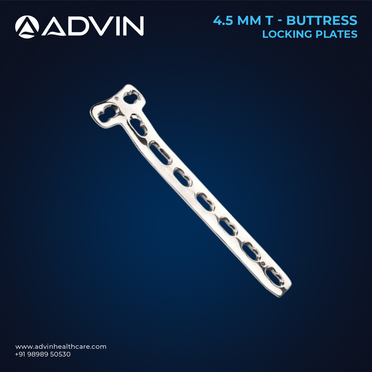 Advin Health Care manufactures high-quality Locking Plates designed for precise fracture stabilization in trauma orthopedic surgeries. These plates allow screws to lock into the plate, reducing the risk of screw loosening and providing angular stability. They are ideal for osteoporotic or comminuted fractures where conventional plating may fail. Made from biocompatible stainless steel or titanium, Locking Plates ensure durable and reliable fixation, improving patient recovery and surgical outcomes.