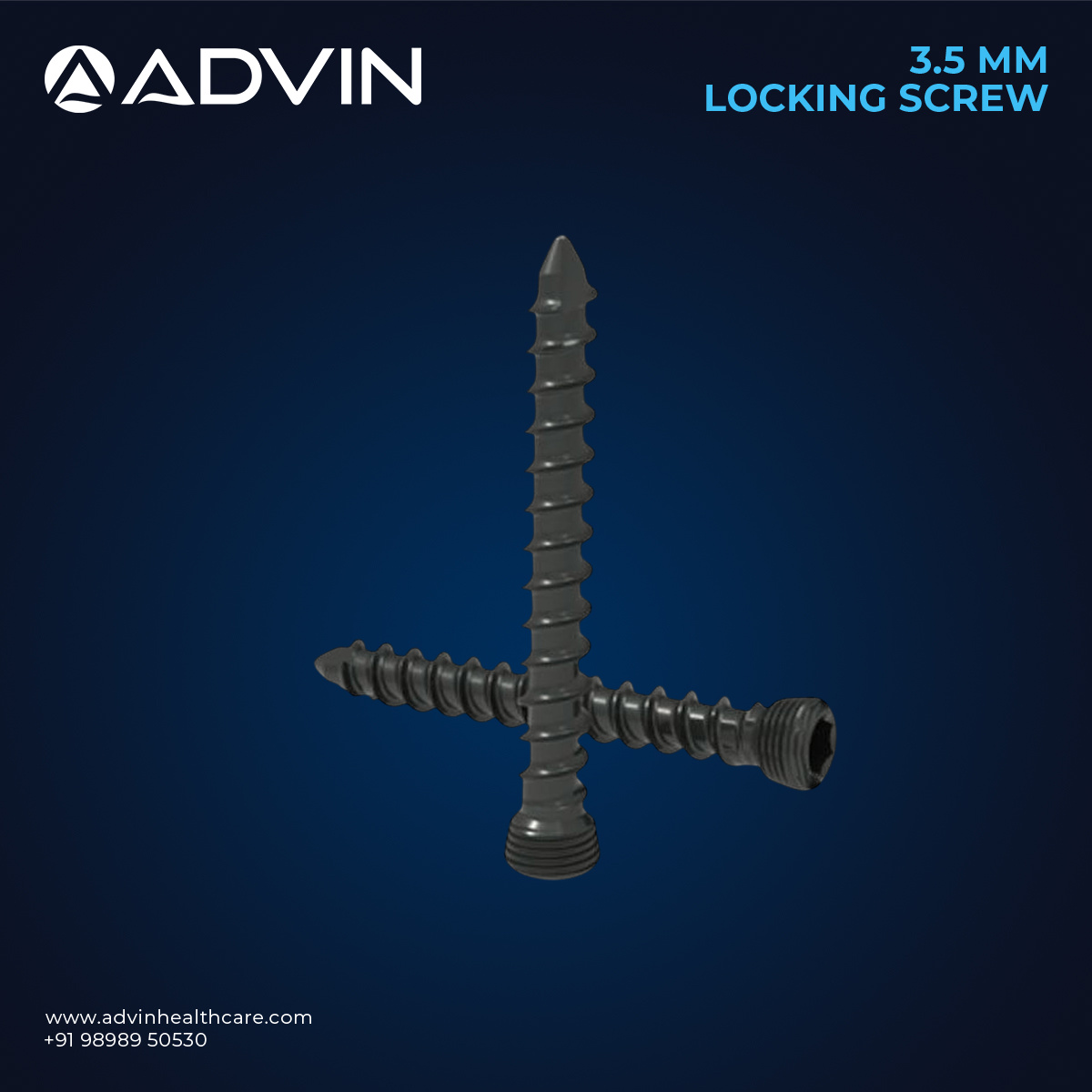 Advin Health Care manufactures high-quality Locking Screws designed for precise fracture fixation in trauma orthopedic surgeries. These screws provide angular stability when used with locking plates, reducing the risk of screw loosening and implant failure. They are ideal for comminuted, periarticular, or osteoporotic fractures where conventional screws may not provide adequate fixation. Made from biocompatible stainless steel or titanium, Locking Screws deliver reliable performance and enhance patient recovery outcomes.
