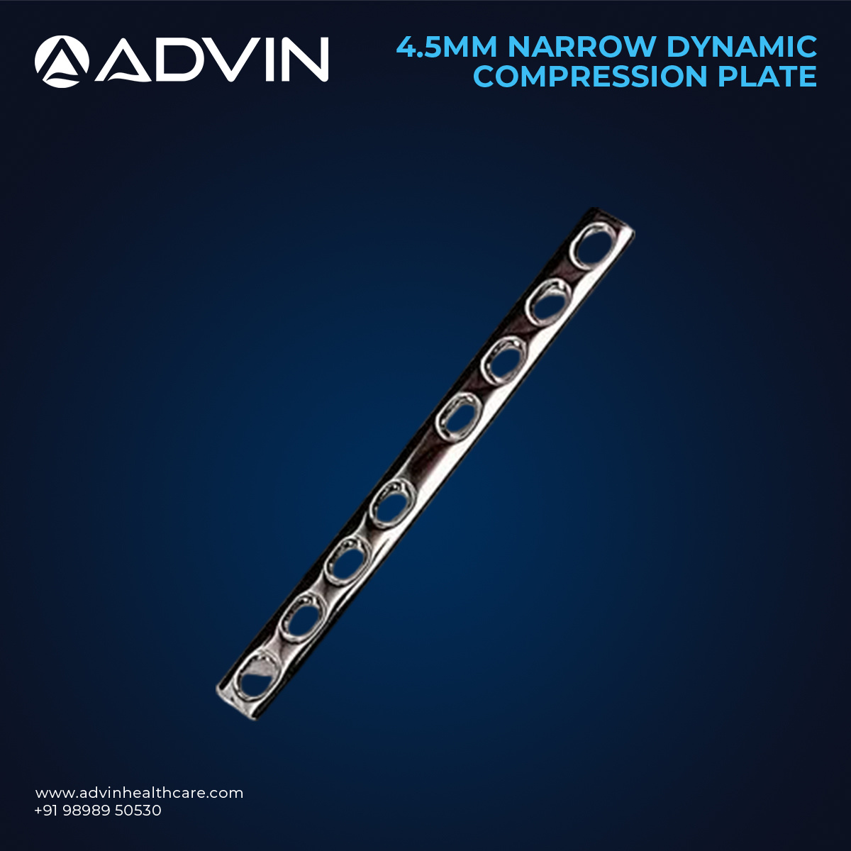 Advin Health Care manufactures high-quality Narrow DCP Plates to ensure precise and reliable fracture fixation in trauma orthopedic surgeries. These plates are made from durable, biocompatible, and corrosion-resistant materials for long-lasting performance. The narrow design allows for optimal fit on smaller bones while maintaining mechanical stability. Designed for ease of surgical handling, they facilitate accurate alignment and controlled compression at the fracture site. Available in various lengths and hole configurations, these plates meet diverse fracture patterns and surgical needs.