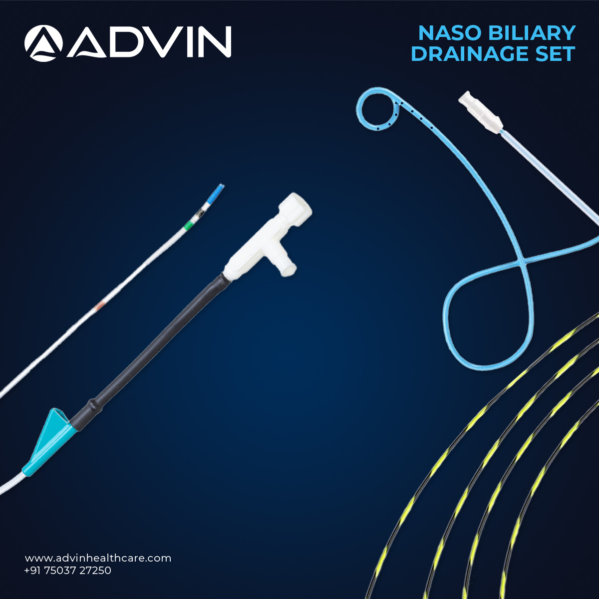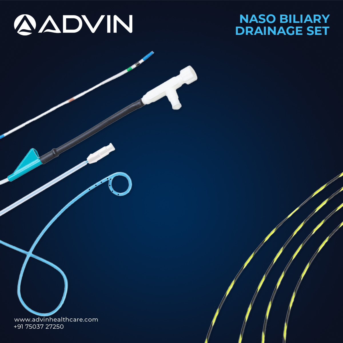 Advin Health Care is globally leading manufacturer and supplier of naso biliary drainage sets designed for effective external biliary drainage during ERCP procedures. The set includes a naso biliary catheter for drainage, an ERCP cannula for ductal access, and a guide wire for smooth navigation and positioning. This combination enables clinicians to establish temporary bile drainage while allowing evaluation of biliary conditions and monitoring of bile output. Designed for compatibility with standard endoscopic systems, the set supports reliable performance in both diagnostic and therapeutic biliary interventions.