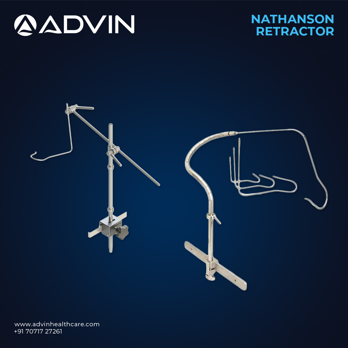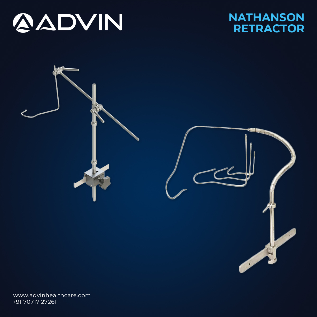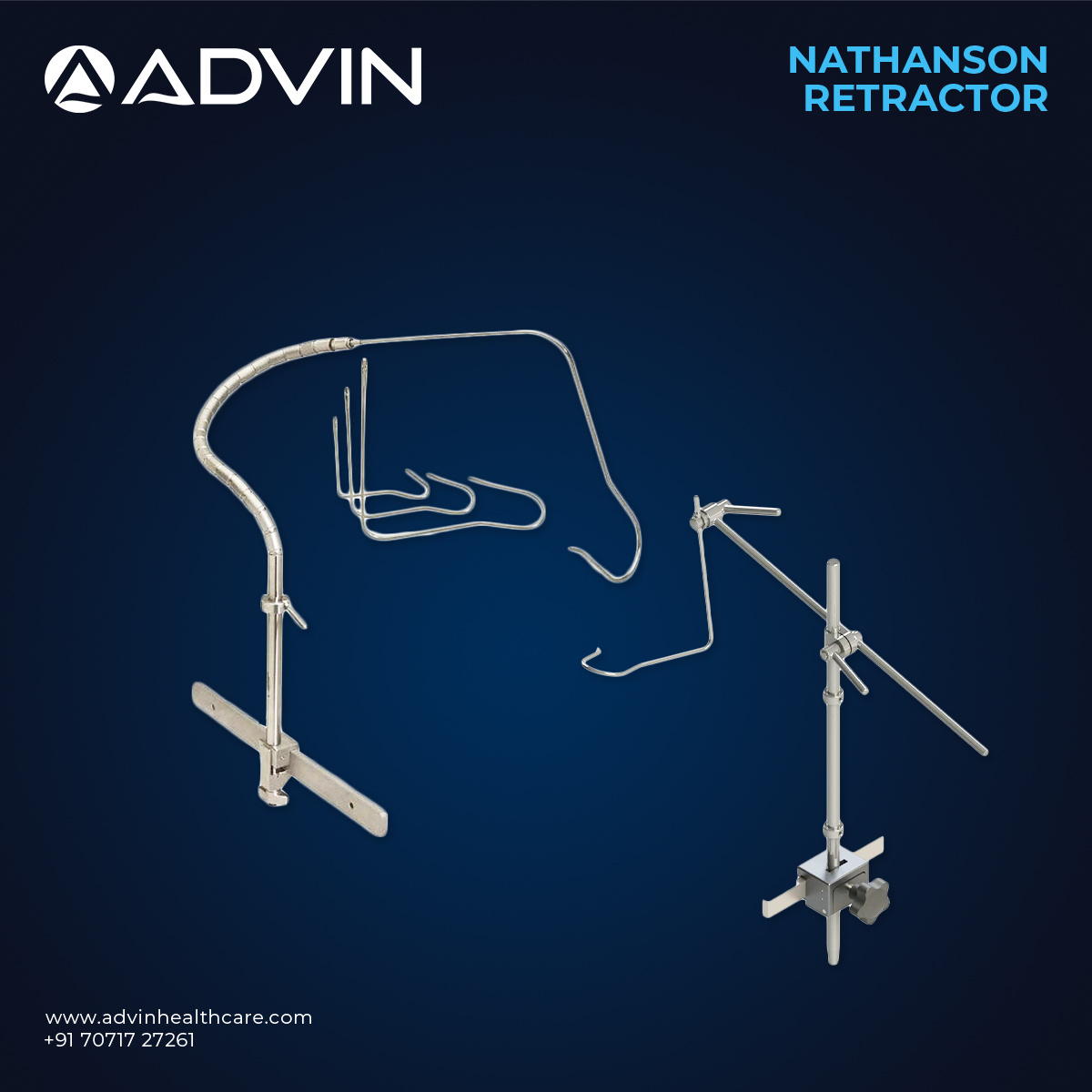 The Nathanson Retractor for Laparoscopy is designed to provide effective liver retraction during minimally invasive surgical procedures. Its curved and sturdy design allows surgeons to elevate the liver safely, providing better access to organs such as the stomach, esophagus, and gallbladder. The retractor helps maintain stable exposure throughout the procedure, which supports precision and efficiency during laparoscopic operations. Advin Health Care manufactures this instrument using high-quality stainless steel to ensure durability, corrosion resistance, and reliable performance in modern surgical environments.