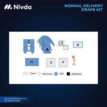 Normal Delivery Drape Kit is a sterile, disposable solution designed for safe and hygienic childbirth procedures. It provides full coverage and protection to maintain aseptic conditions during normal delivery. Manufactured by Nivda, this kit helps prevent cross-contamination and ensures a safe environment for both mother and newborn.