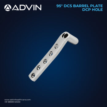 Advin Health Care manufactures high-quality Orthopedic 95° DCS Barrel Bone Plate DCP Hole implants for reliable trauma orthopedic applications. The plate’s 95° barrel structure combined with DCP holes allows controlled dynamic compression at the fracture site. It is particularly suitable for distal femur fractures where accurate anatomical fixation is critical. Constructed from durable, biocompatible materials, this implant ensures stable fixation, supports proper healing, and promotes early functional recovery.