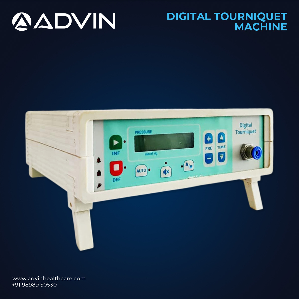 The Digital Tourniquet is widely used in orthopedic, vascular, and reconstructive surgeries to maintain a bloodless surgical field. It offers precise digital pressure control, customizable settings, and real-time monitoring to ensure patient safety. The device features an easy-to-use interface and durable cuff materials for comfortable and secure application. Advin Health Care manufactures Digital Tourniquets with high-quality components, providing reliable, accurate, and safe performance in demanding surgical environments.