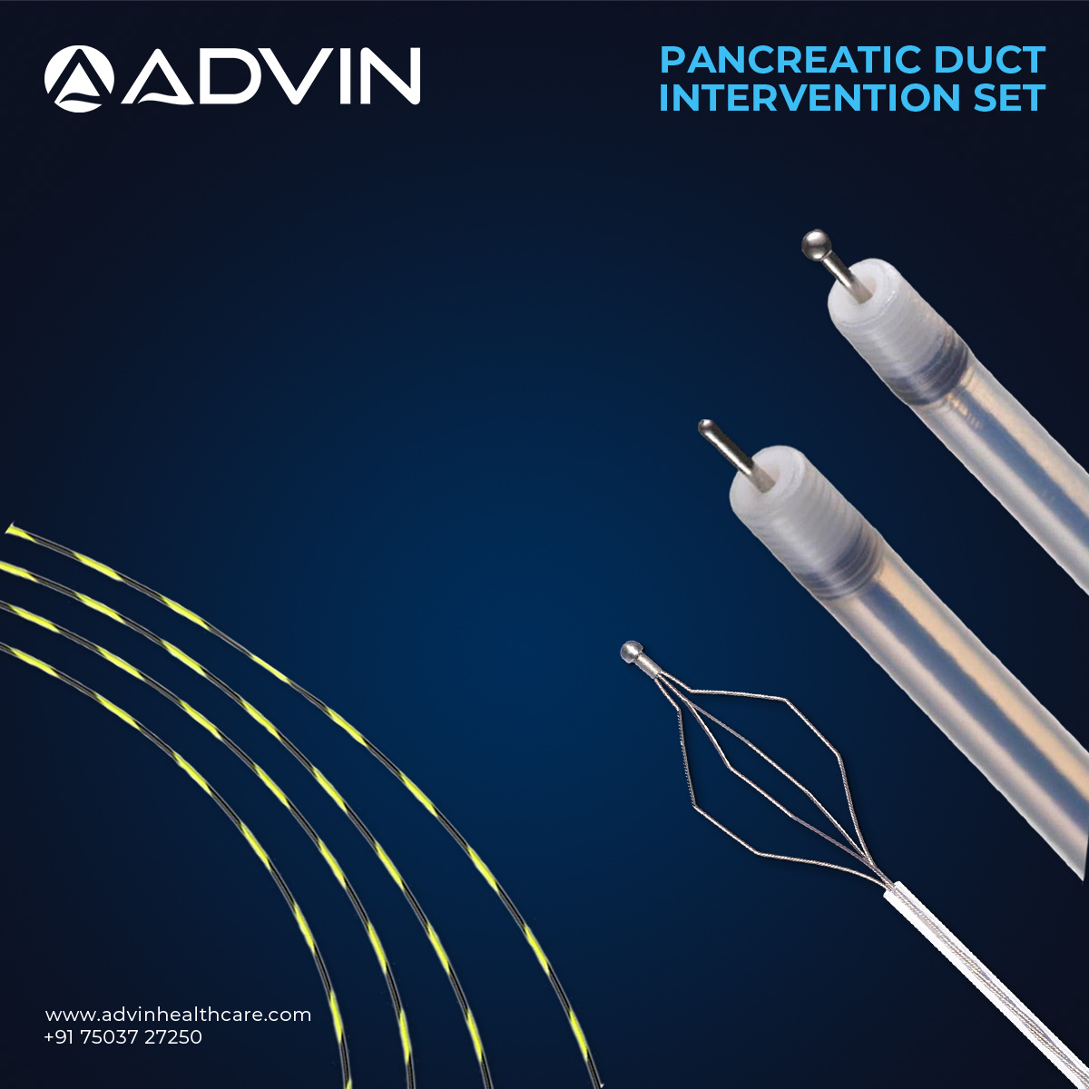 Advin Health Care is globally leading manufacturer and supplier of pancreatic duct intervention sets designed for advanced therapeutic procedures during ERCP. The set includes an ERCP pancreatic basket for stone capture and removal, a guide wire for smooth navigation within the duct, and a needle knife for precise incision and access when required. This combination allows clinicians to perform comprehensive pancreatic interventions with improved control and procedural efficiency. Designed for compatibility with standard ERCP systems, the set ensures reliable performance in managing pancreatic ductal conditions.
