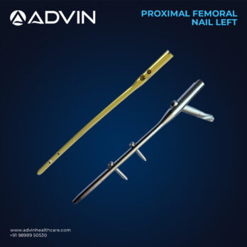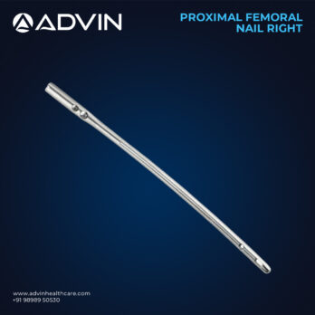 Advin Health Care manufactures high-quality Proximal Femoral Nails designed to provide stable fixation for complex femoral fractures. The implant ensures superior rotational and axial stability with both proximal and distal locking screws, offering enhanced load-bearing capability. Its anatomical design allows easy insertion and accurate positioning while minimizing soft tissue damage. Made from biocompatible stainless steel or titanium, the Proximal Femoral Nail ensures reliable fixation, faster recovery, and reduced risk of implant-related complications.