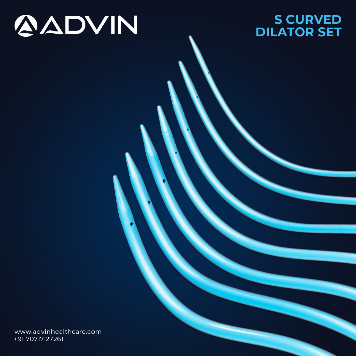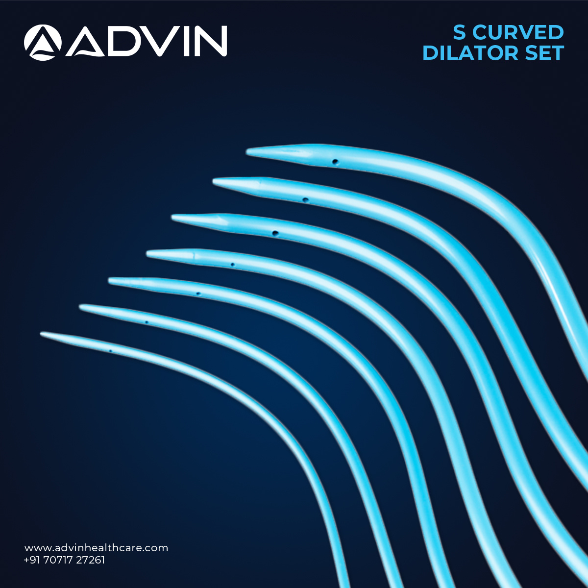 S Curve Urethral Dilator Set is specifically designed for stepwise and precise dilation of urethral strictures with anatomical curves. The S-shaped design allows better navigation through the urethra, reducing tissue trauma and enhancing patient comfort.