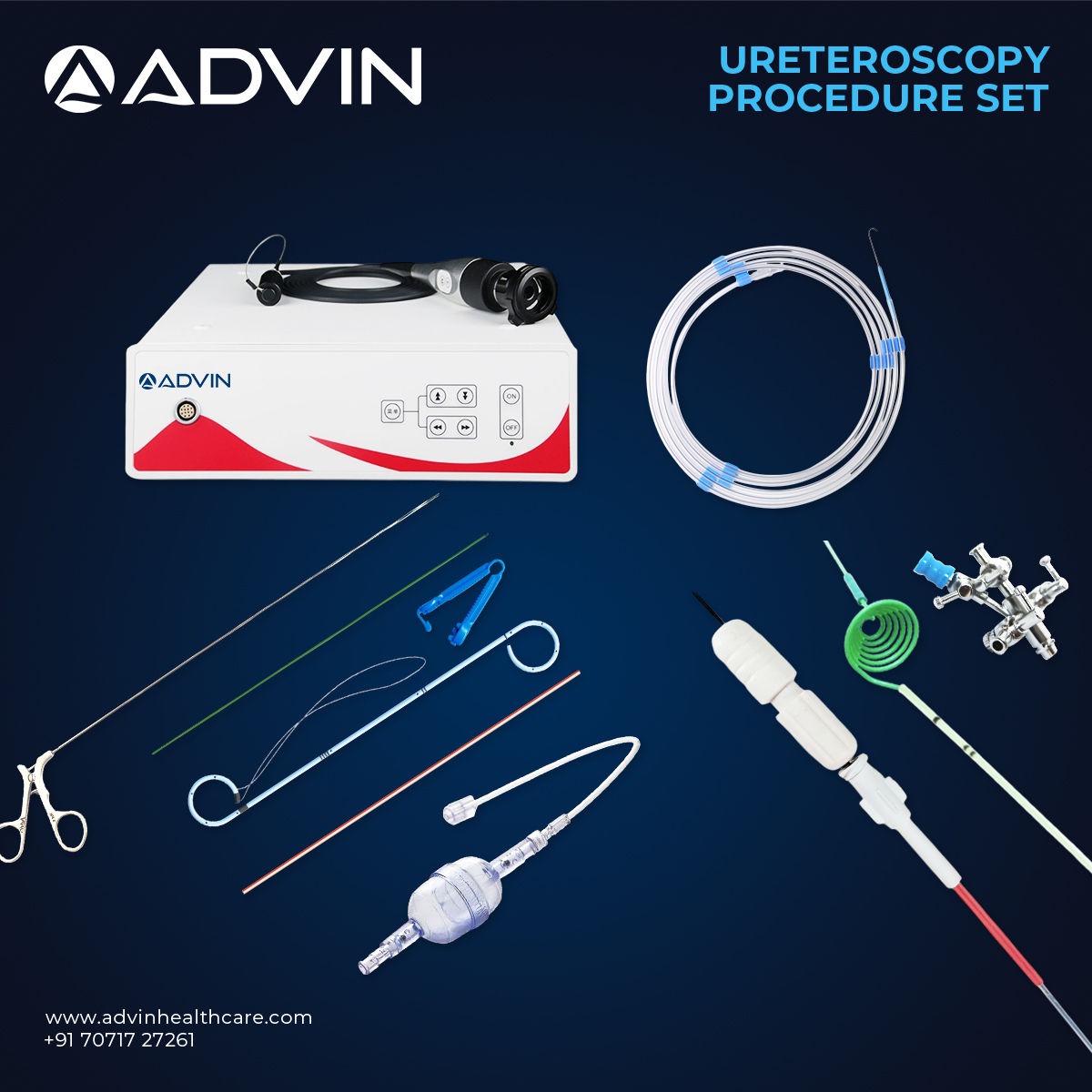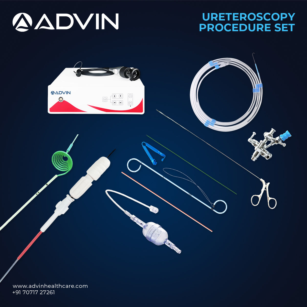 The Ureteroscopy Procedure Set is designed to provide precise visualization and access to the ureter and renal pelvis during urological procedures. It enables clinicians to diagnose abnormalities, remove stones, and perform therapeutic interventions using an endoscopic approach. The set typically includes a ureteroscope, working instruments, access components, and essential accessories required for complete ureteroscopy procedures. Manufactured under strict quality standards, Advin Health Care supplies this system to meet the clinical performance, durability, and safety requirements of modern urology practice.