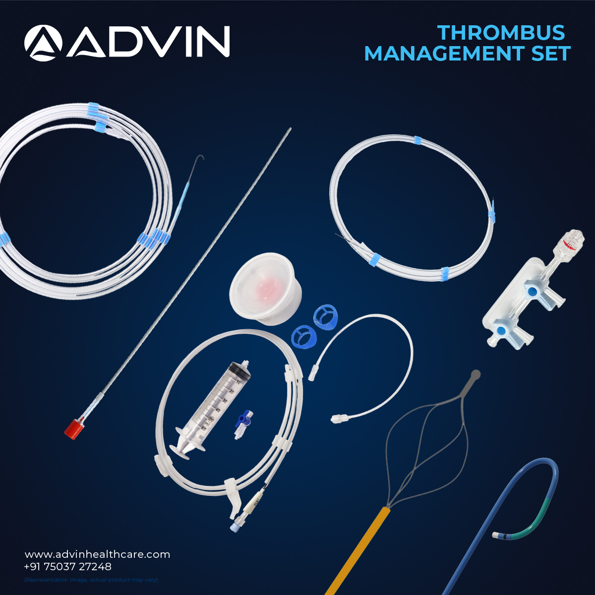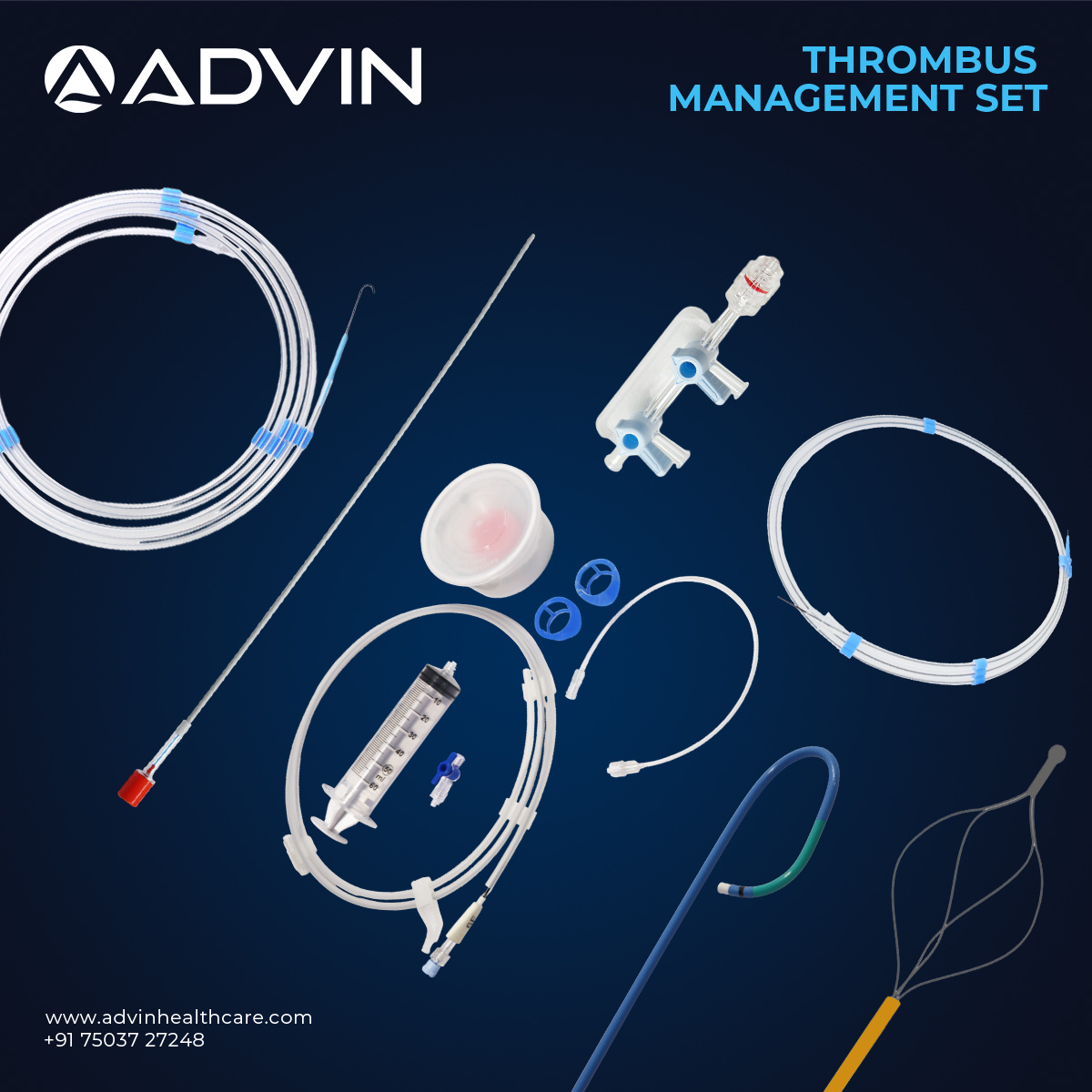 This kit is designed to support effective management and removal of thrombus in vascular interventions. It typically includes aspiration catheters, guidewires, and supporting accessories for smooth navigation and controlled clot extraction. The system helps clinicians treat vascular blockages and reduce complications associated with impaired blood flow. Advin Health Care provides vascular clot management kits developed to meet clinical standards for safety, reliability, and consistent performance in interventional care.